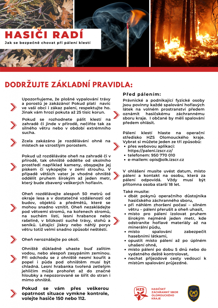 Upozorňujeme, že plošné vypalování trávy a porostů je zakázáno!