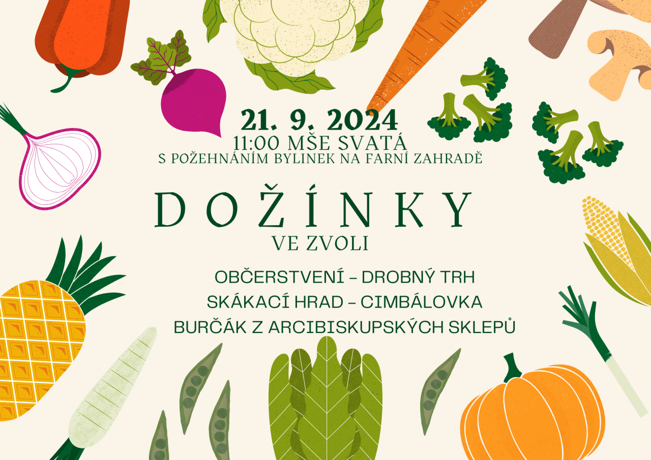V 11:00 mše svatá s požehnáním bylinek na farní zahradě se bude slavit podle plánu. Odpolední část slavnosti Dožínek je s ohledem k aktuální situaci mimořádného stavu zrušena.